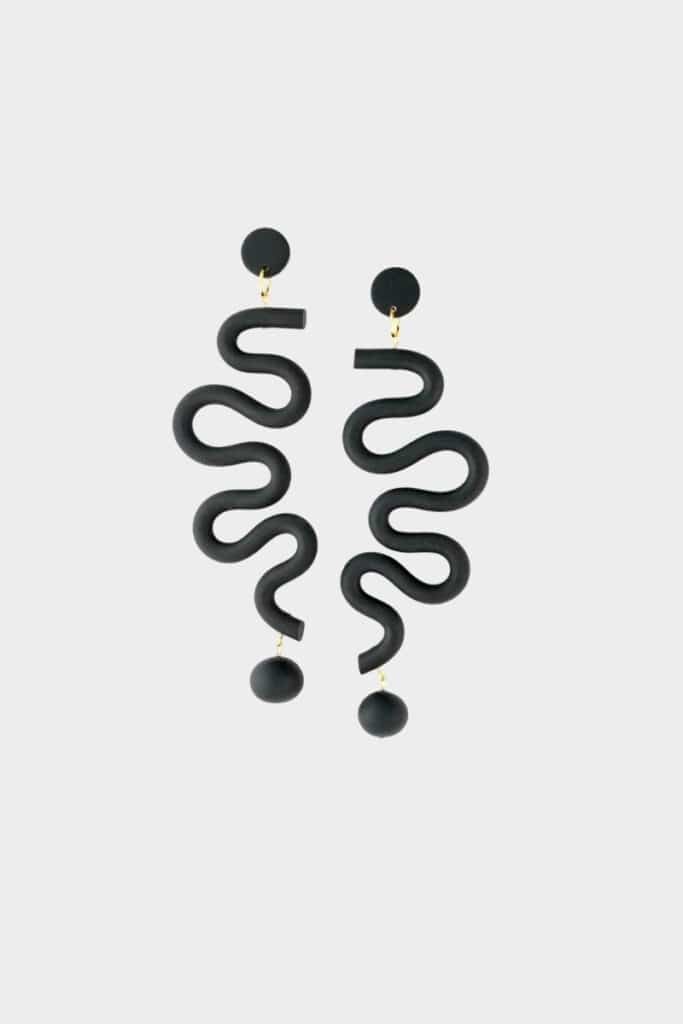 “These black Tube Squiggles Statement Earrings are so fun and vibrant, they will instantly elevate any outfit. The owner hand-makes everything herself.”