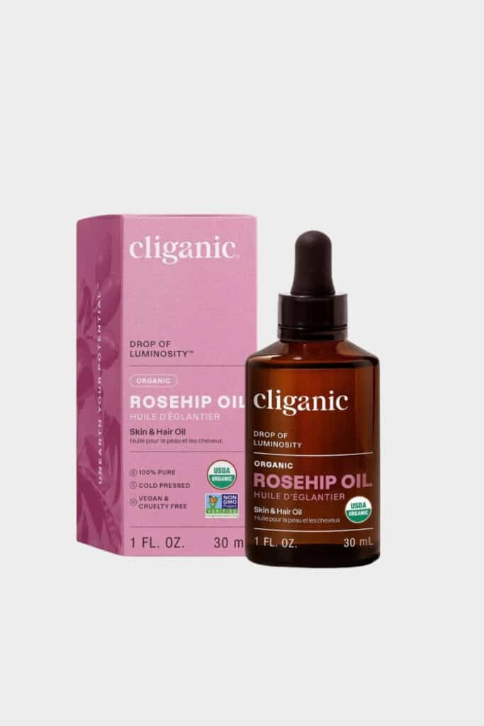 “I’m very particular about this one because rosehip oil needs to be pure to work. Many rosehip oils are diluted blends, but Cliganic is cold-pressed, organic, and 100% pure: one ingredient, nothing else. That’s why it actually works.”
