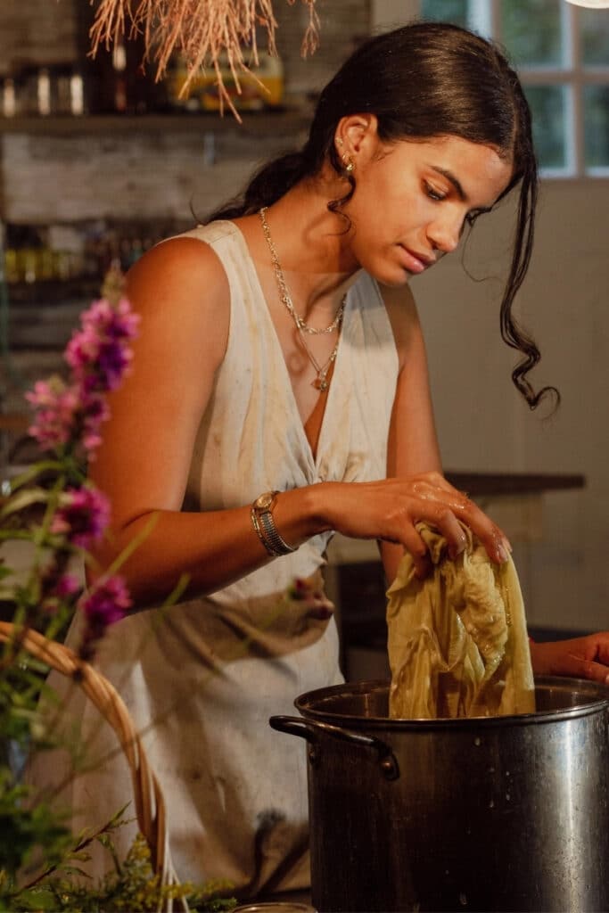 “Jasmine Santiago of Vida Después creates beautiful plant-dyed clothing, using botanical dyes by hand to give new life to vintage garments using discarded flowers, herbs, and food scraps. Every piece is stunning and completely one of a kind.”