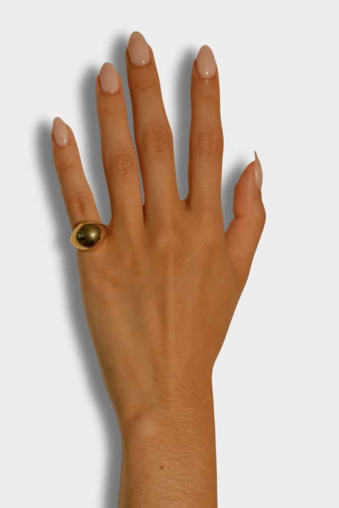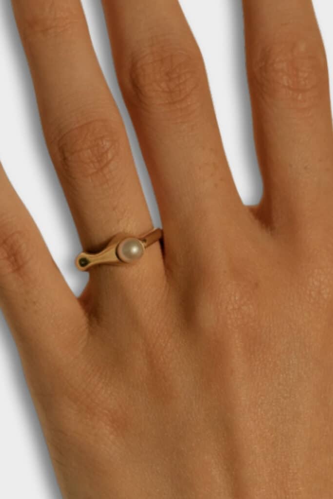 “This ring has become a cult favorite and our best-selling handmade piece. We recently added birthstones, though the original pearl version remains the classic.”