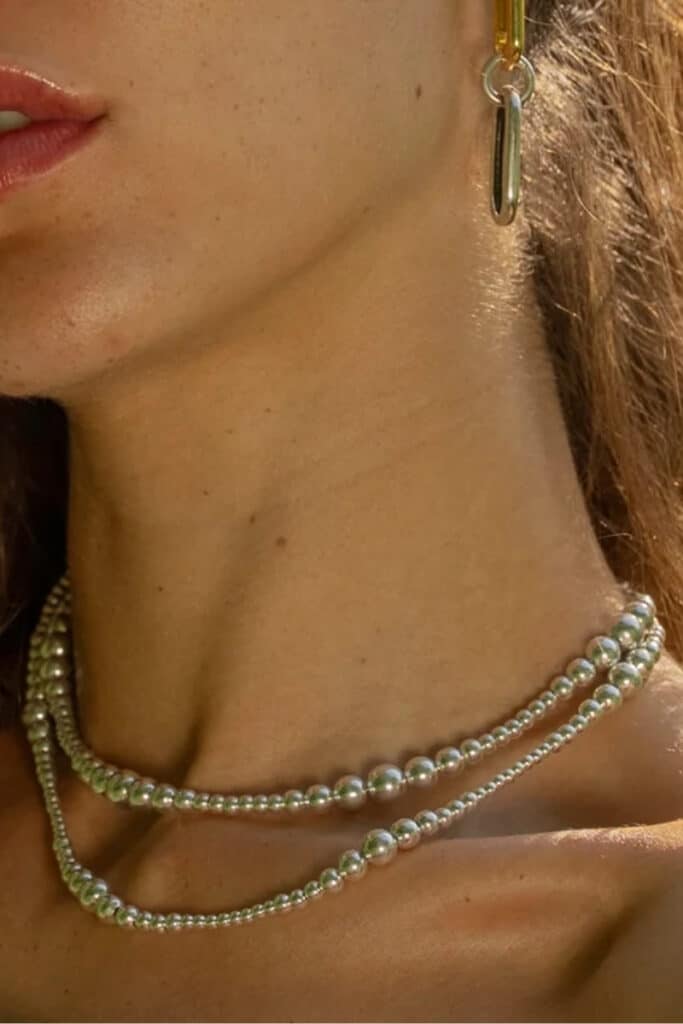 “I love this necklace for its kinetic energy—the graduating beads create a sense of movement around the neck, especially when layered with a longer version for a cascading effect.”