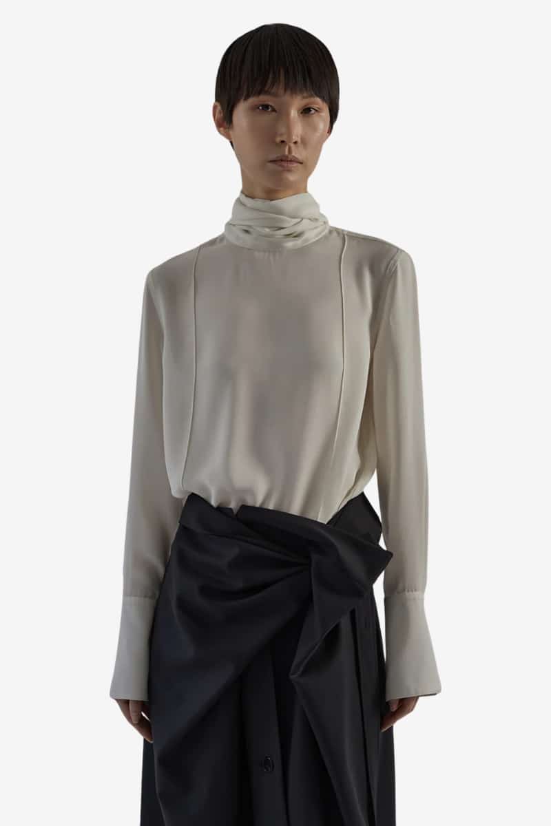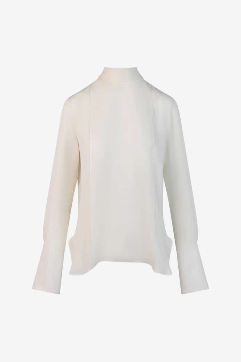 We love the Matilda Blouse for its effortless sophistication. Made from 100% silk double georgette, it drapes beautifully and feels as good as it looks. The tie-neck detail is subtle but powerful: you can wrap it around for a bow at the front or let it drape like a scarf. We also love the pin tucks and the exaggerated cuffs on this ivory silk blouse. These little design moments create interest and make this silk blouse a unique yet timeless addition to your wardrobe.